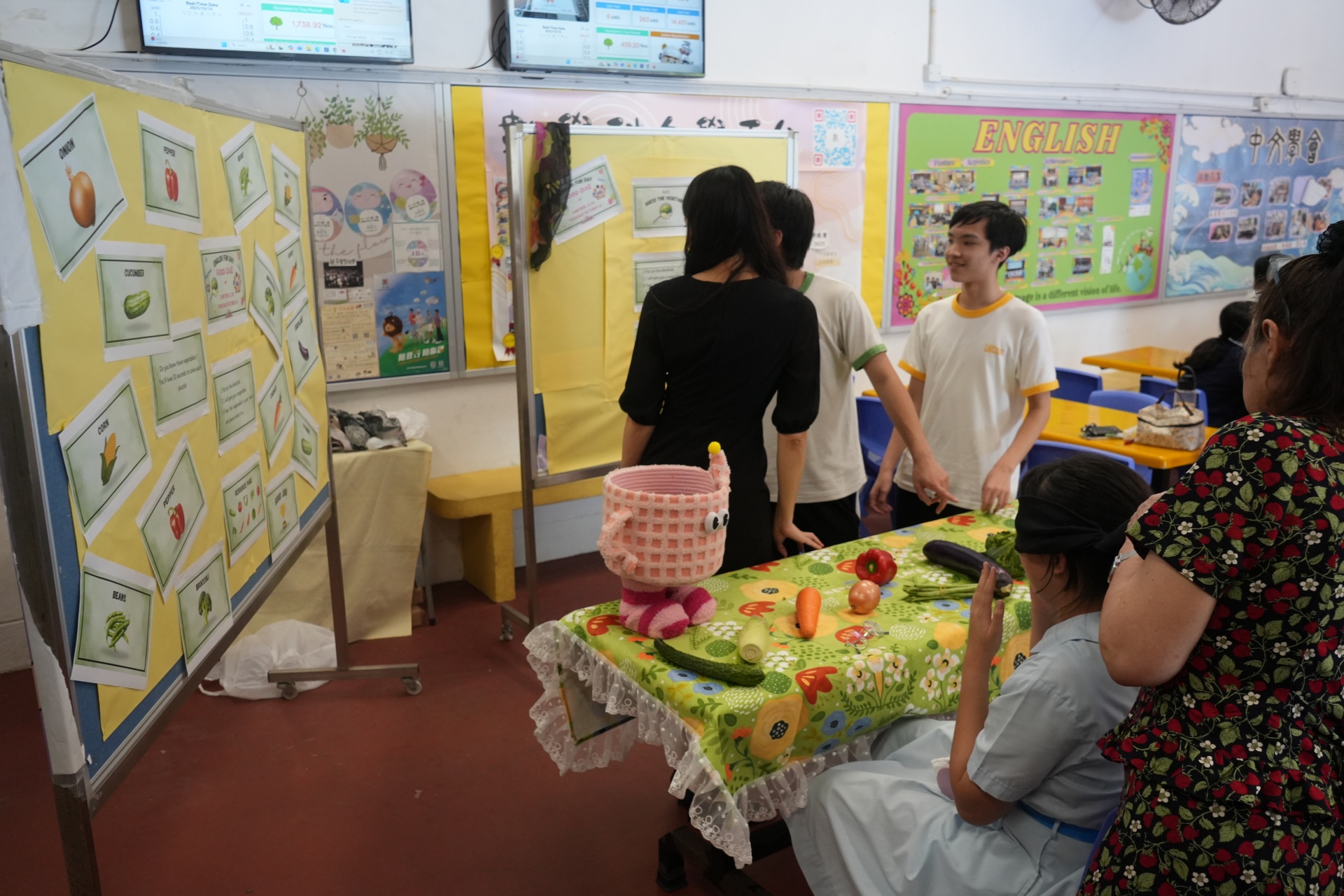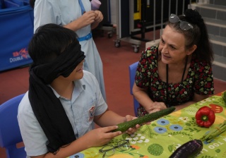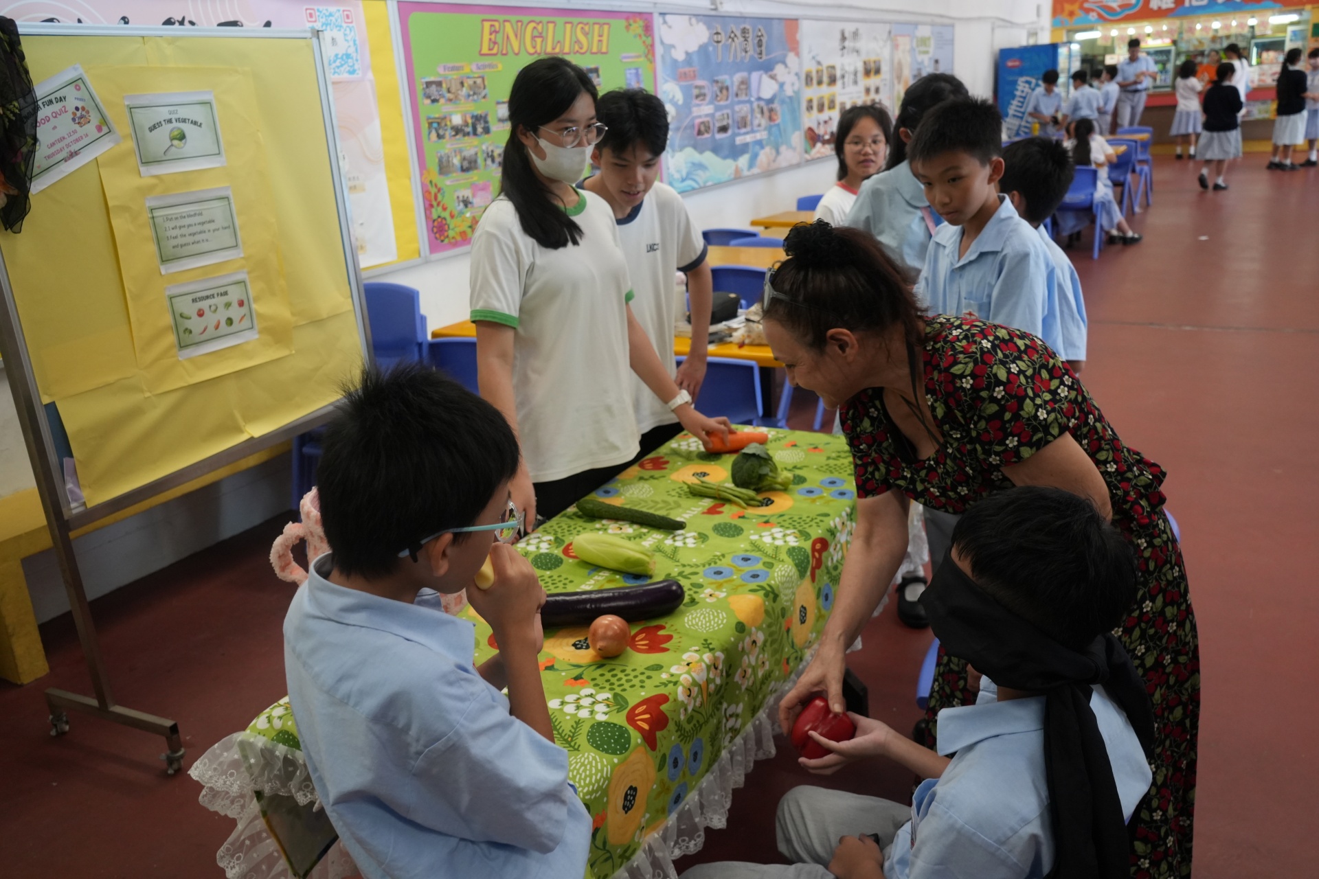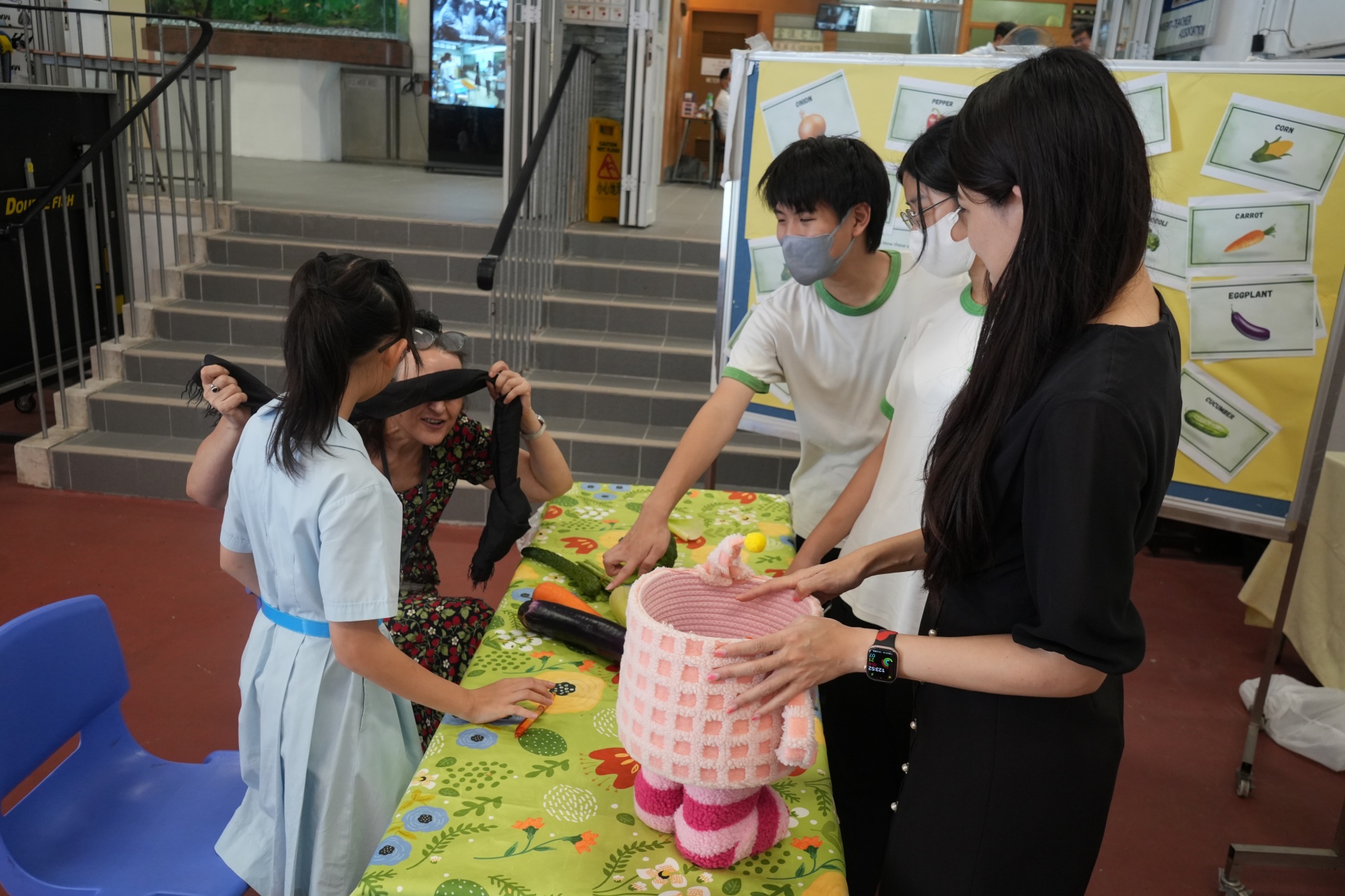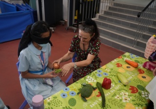The English Department organized a special test of English vocabulary by challenging students to name vegetables while blindfolded. A unique and fun way to revise English vocabulary.
