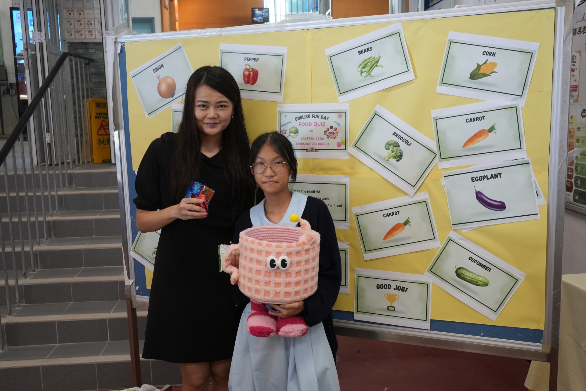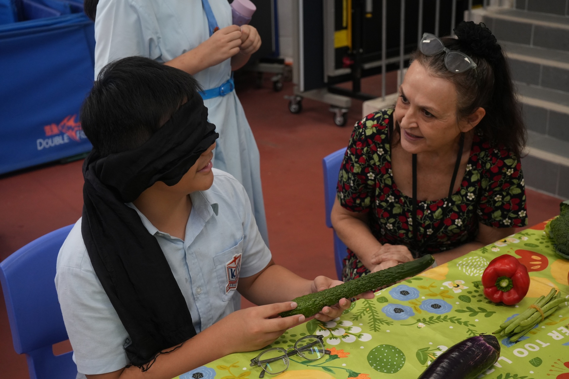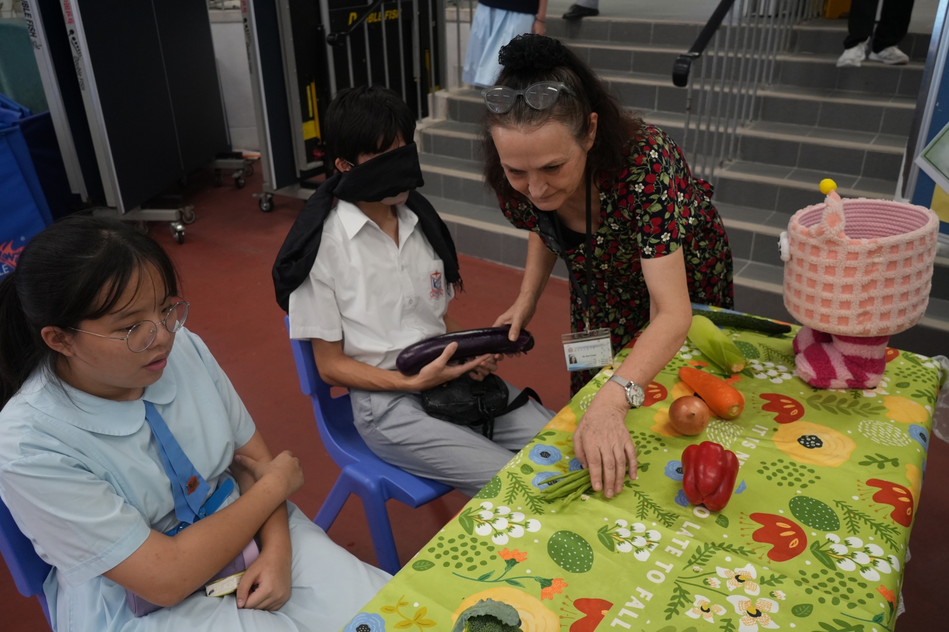 The English Department organized a special test of English vocabulary by challenging students to name vegetables while blindfolded. A unique and fun way to revise English vocabulary.