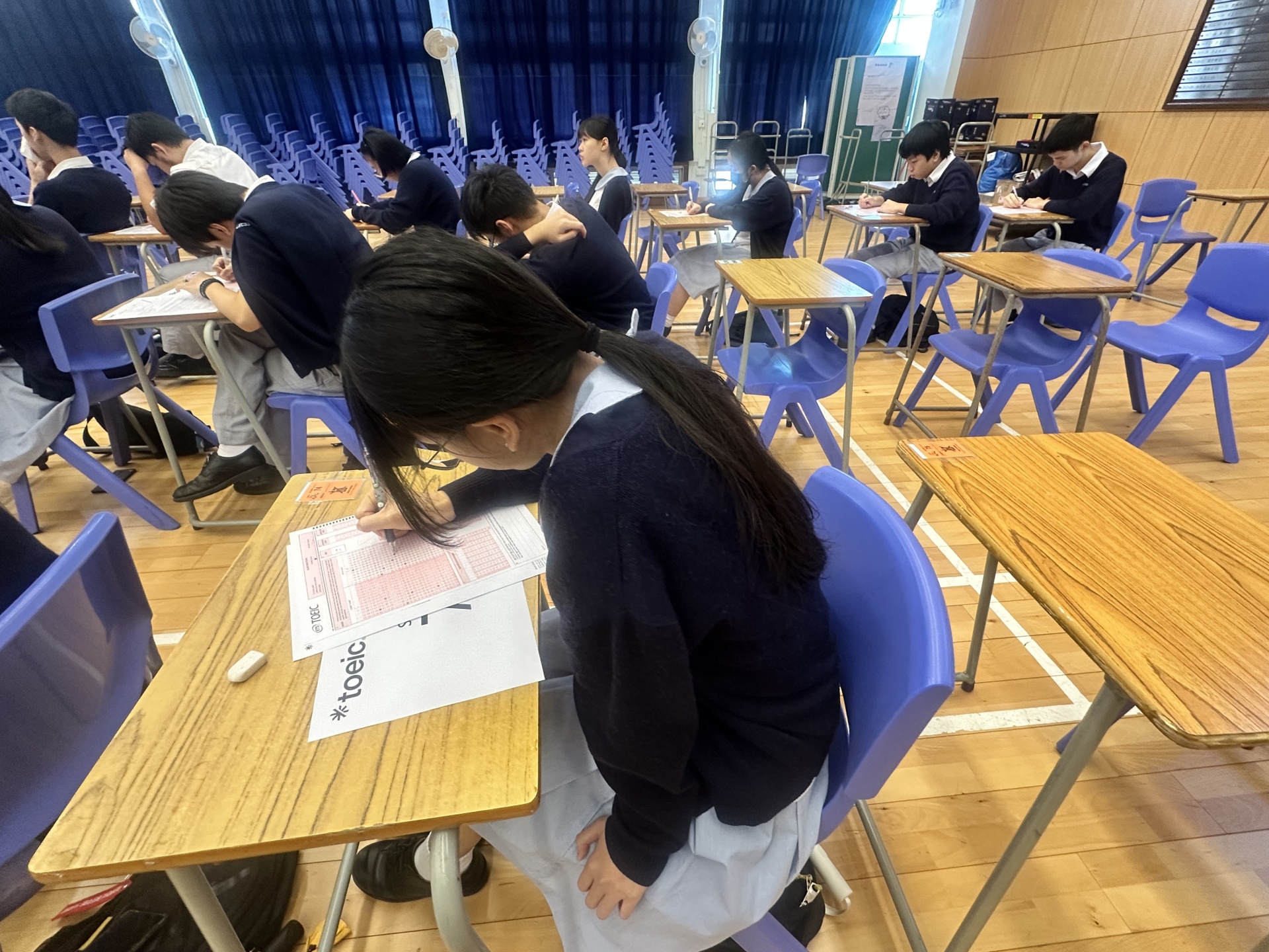 In order to prepare students for the the HKDSE and help them to get to know their strengths and weaknesses, the TOEIC English Proficiency Test was conducted on 24 Oct 2025 by the English Department. The test is one of the four major global English proficiency tests and serves as a benchmark for students' English proficiency for further education and employment.