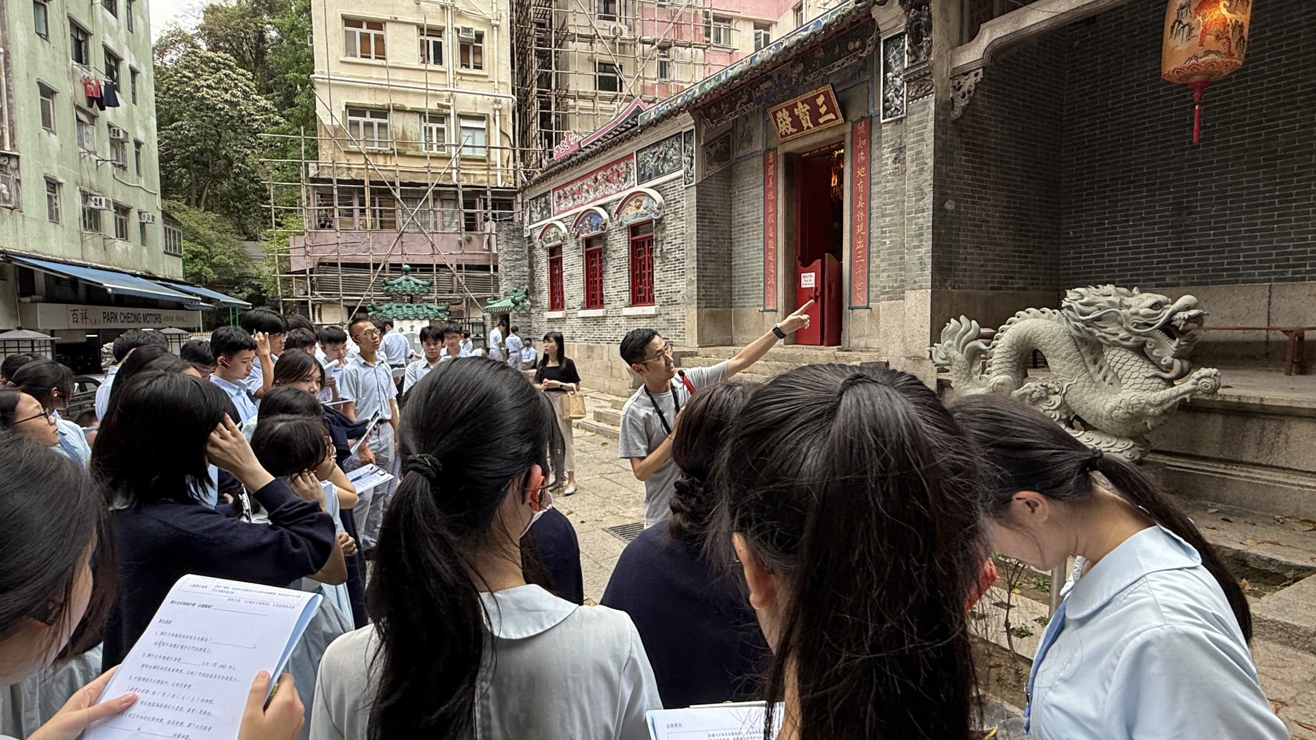 為配合【全民國家安全教育日2026】,國民教育統籌委員會與英文科安排中三級到訪灣仔玉虛宮,透過本地文化導賞加深對中國傳統文化及本地歷史的認識。